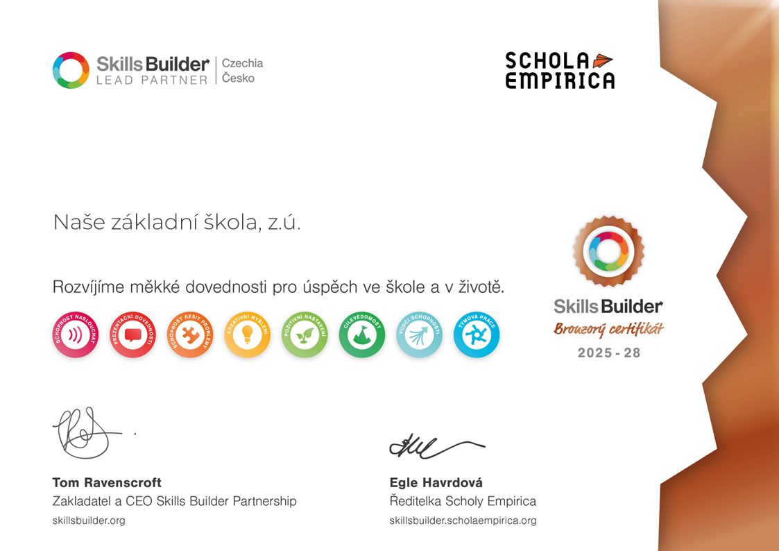 Stali jsme se certifikovanou školou Skills Builder a získali bronzový certifikát!
